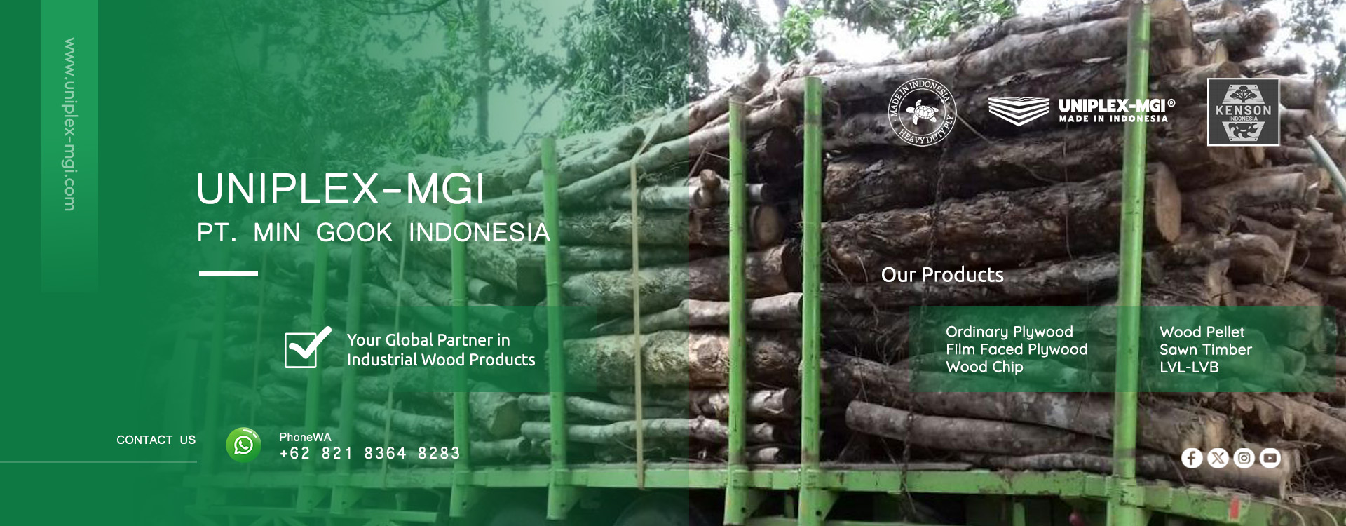 Uniplex MGI is a wood-based manufacturing company based in Lampung, Indonesia. We specialize in the production and distribution of high-quality wood products such as Ordinary Plywood, Film Faced Plywood, Wood Chip, Wood Pellet, Sawn Timber, and LVL-LVB.